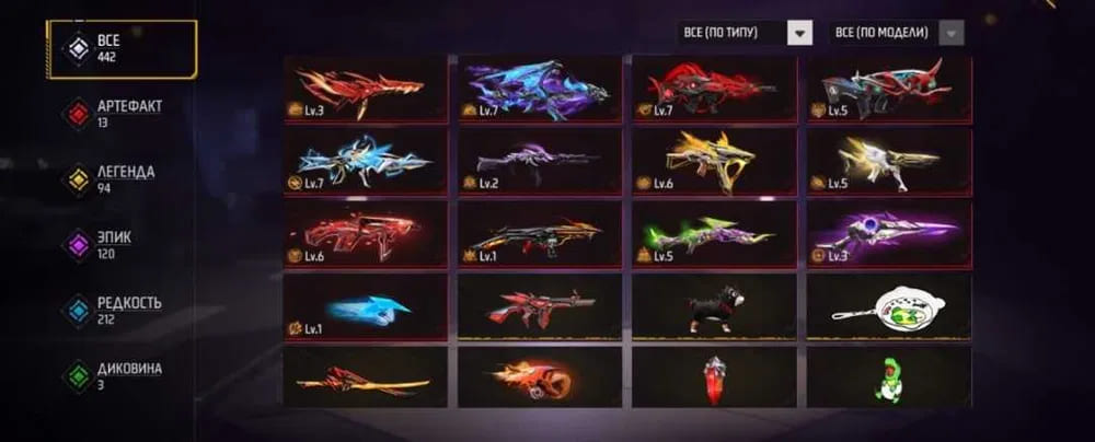 🌈Скины на оружие: 442;